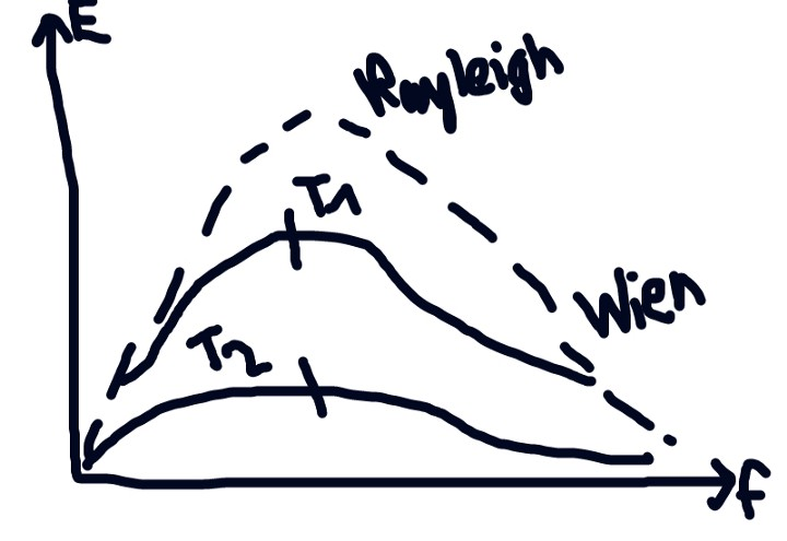 The thing with the hollow cavity was that physicists could measure the spectrum of black body radiation after that black body was heated. No one could theoretically explain this spectrum. Two physicists Rayleigh and Wien tried to find a formula for the black body radiation spectrum, but what they postulated was fatal. According to the Rayleigh formula, the energy of the radiated light would expand with smaller wavelengths to an extent where more energy comes out of the black body than what was imported. That, however, is not possible.