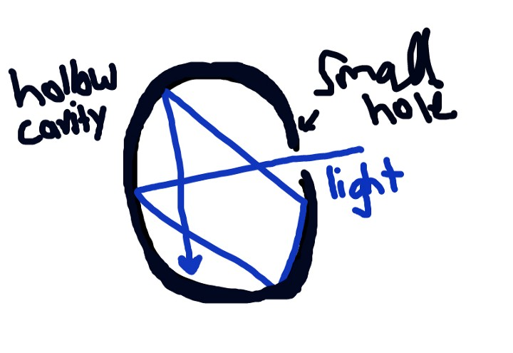 Imagine a black box with a hollow cavity and with a very tiny hole in it. Into that hole, we shoot light. What will happen? This box is a technical realization of a black body, meaning the light we shoot into the hole will reflect as long as almost all the light gets absorbed. Only a small amount of thermal energy leaves the box again.